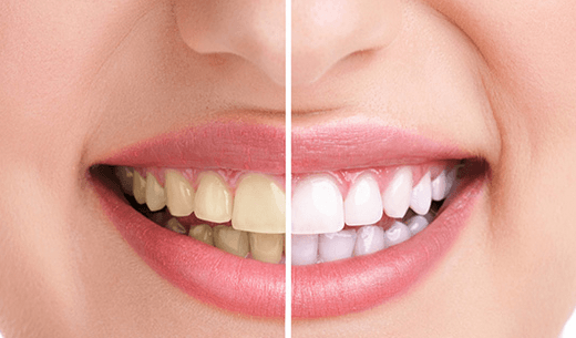 Schöne Zähne durch professionelle Zahnaufhellung. Die Lebensmittelverfärbungen oder die Verfärbung durch Rauchen wird entfernt. Dadurch erhalten Sie strahlend weiße Zähne.